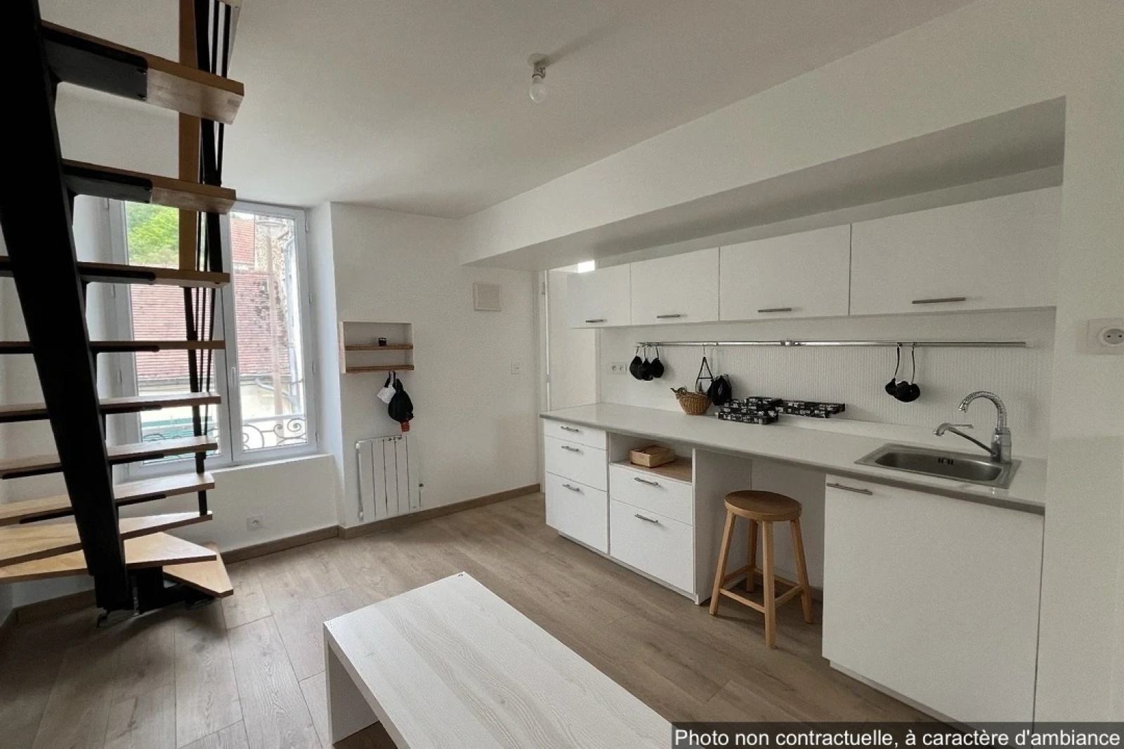 A Chevreuse, nous vous proposons ce duplex entièrement rénové en plein coeur du village avec les commodités à pieds. Il se compose d'un entrée avec cellier, d'un espace de vie ouvert avec cuisine américaine, d'un bureau ou chambre d'enfant. A l'étage, une belle chambre avec salle de bain. Copropriété de 4 lots - Pas de procédure en cours - Pas de charges annuelles. Nous avons eu recours à l'intélligence artificielle pour vous donner des idées d'aménagement.